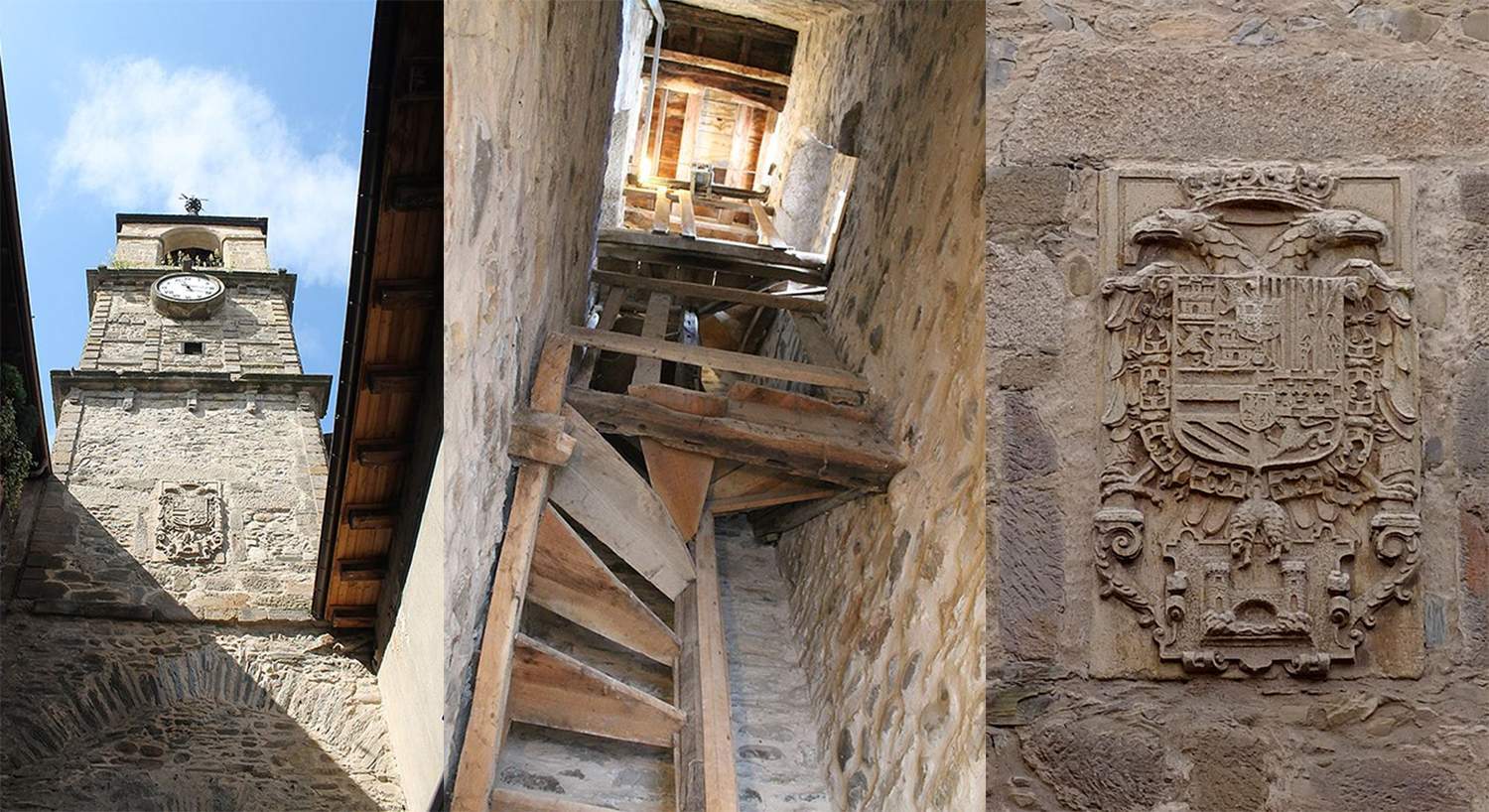 En su primer tramo, se encuentra el escudo imperial junto con el de la villa. Por su parte, el reloj más famoso del Bierzo se encuentra en el segundo tramo, instalado a principios del siglo XIX. Finalmente, en el tercer tramo podemos encontrar la campana hacia la que se puede acceder desde la escalera exterior ubicada en la calle Carnicerías.