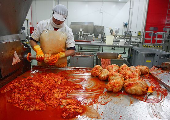 Producción en una de las industrias adheridas a la marca del Botillo del BierzoLa tradición manda que el último botillo del año se coma en Carnaval, justo antes de entrar en Cuaresma, pero esa costumbre ha ido cambiado a lo largo de los años con otras formas de consumo y producción que alargan la presencia del embutido rey en las mesas del Bierzo. Y es que es muy difícil renunciar a este majar berciano cuando, como este año, las fiestas de Don Carnal se celebran tan 'temprano' y aún queda invierno y frío por delante, las empresas embuten prácticamente todo el año y aparecen otras formas de comer botillo, más allá de su preparación tradicional, cocido y acompañado con repollo o berza, patatas y chorizo.