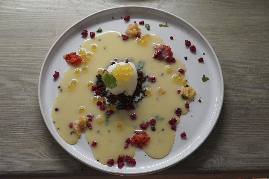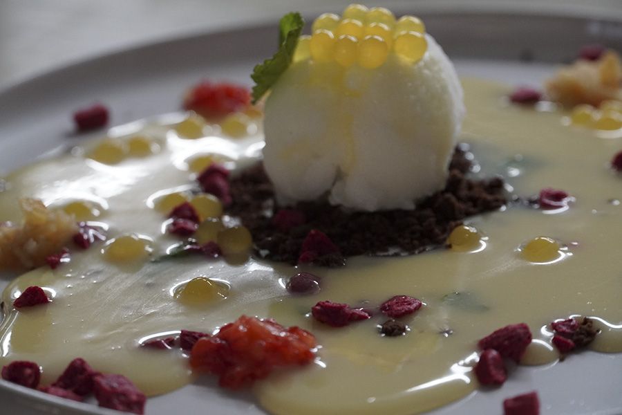 Una base de chocolate como si fuera tierra será el ‘colchón’ del helado de cítricos acompañado de frambuesa crunchy, esferificaciones de lima y chocolate blanco caliente. Una delicia para poner punto final a una experiencia gastronómica única.