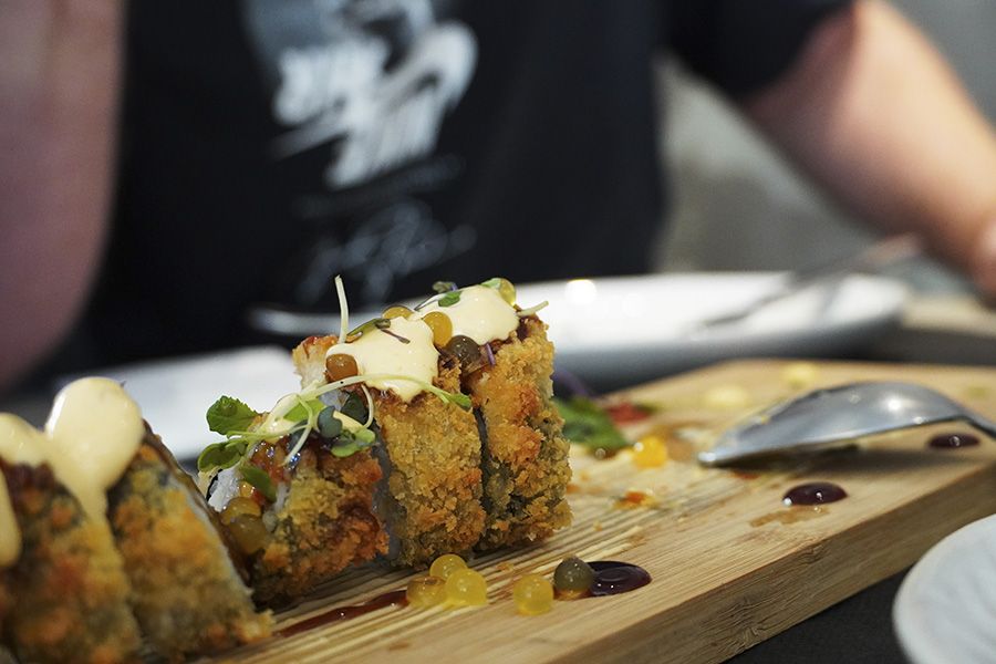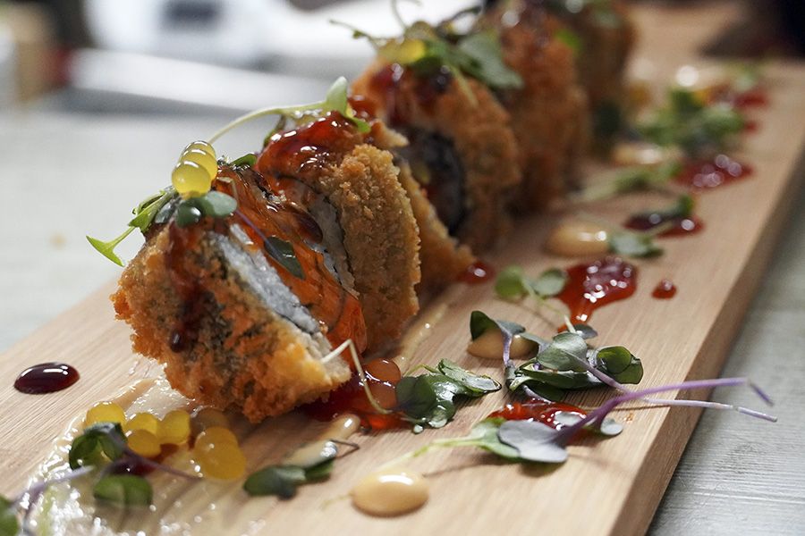 SUSHI TEMPURIZADO RELLENO DE GAMBÓN Y MANGO