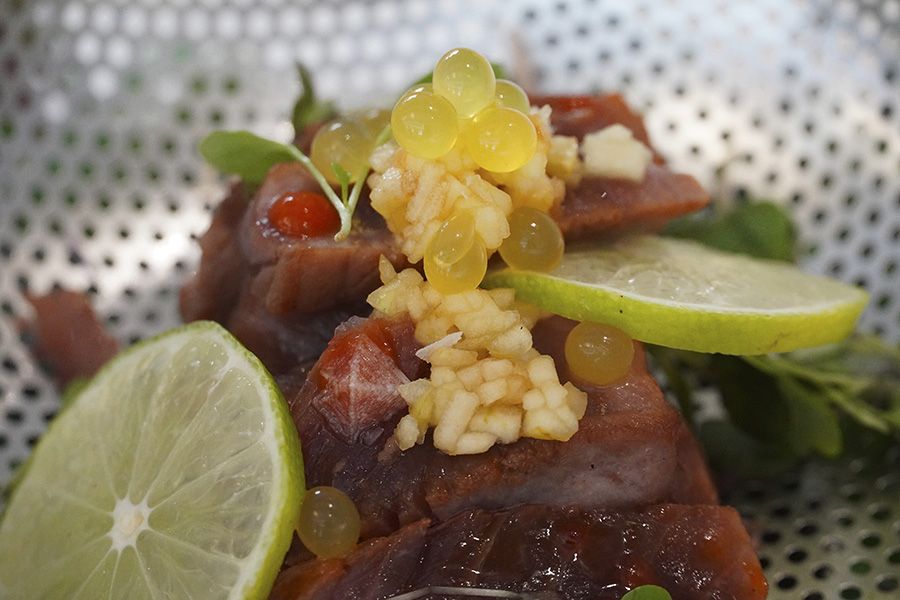 ATÚN ROJO EN EMULSIÓN DE MANZANA REINETA MARINADO CON SOJA Y JENGIBRE