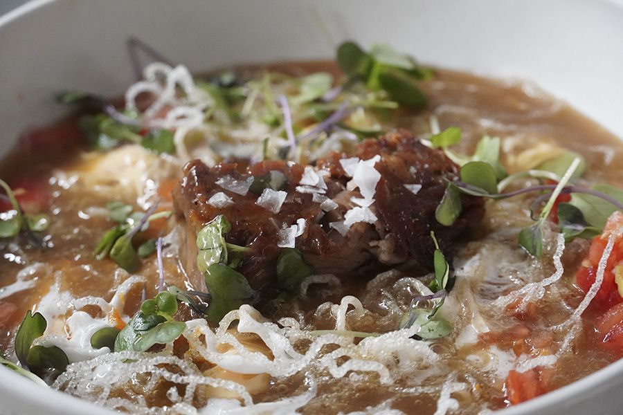 Los fideos del Ramen en Dame Tus Alas son protagonistas de esta experiencia gastronómica, que después de una deshidratación y fritura harán viajar al comensal a la más pura infancia pudiendo recordar aquellas ‘pajitas’. Además, este Ramen viene acompañado por cordero deshuesado, caldo de marisco y cordero, salsa tailandesa, grasa de leche de coco y toques cítricos. Una experiencia gastronómica digna de vivirla.