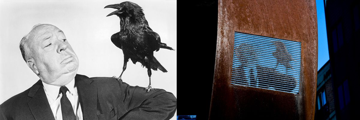 De las 13 escenas de la rotonda del cine, esta es la única que realmente no es una escena de una película, es una imagen promocional del director con un cuervo, los "villanos" del film. Hitchcock era conocido por hacer campañas de marketing realmente llamativas y salir en todas sus películas haciendo un cameo.