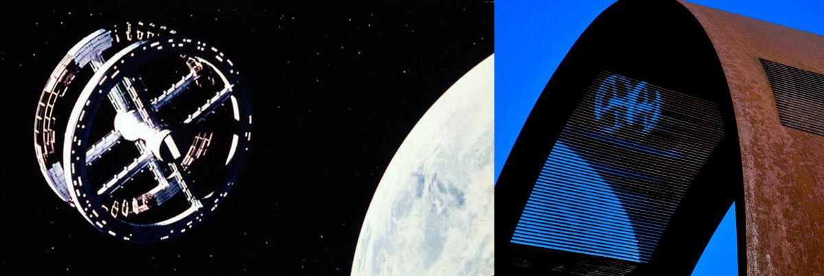 La escena en cuestión transcurre después de una de las transiciones más importantes de la historia del cine, donde Kubrick hace avanzar la historia millones de años haciendo una transición entre un hueso lanzado por un neandertal hasta fusionarlo con un satélite en el espacio. Después conoceremos al "protagonista" de la historia en la nave que podemos ver en la escena de la rotonda del cine de Ponferrada.