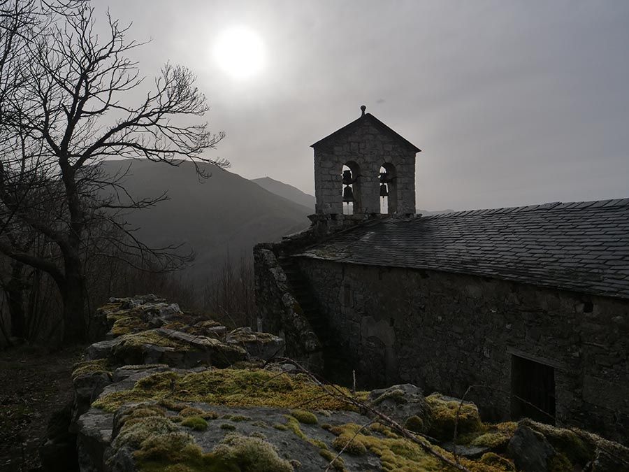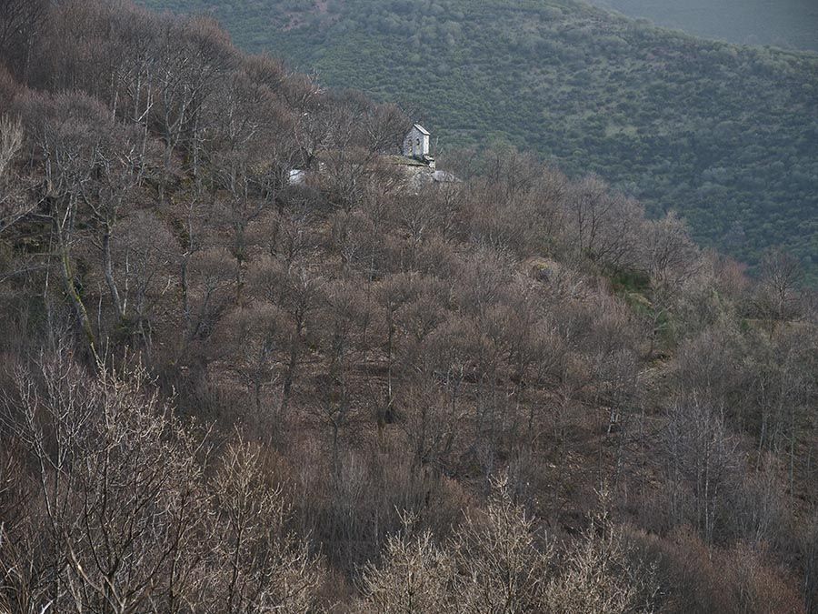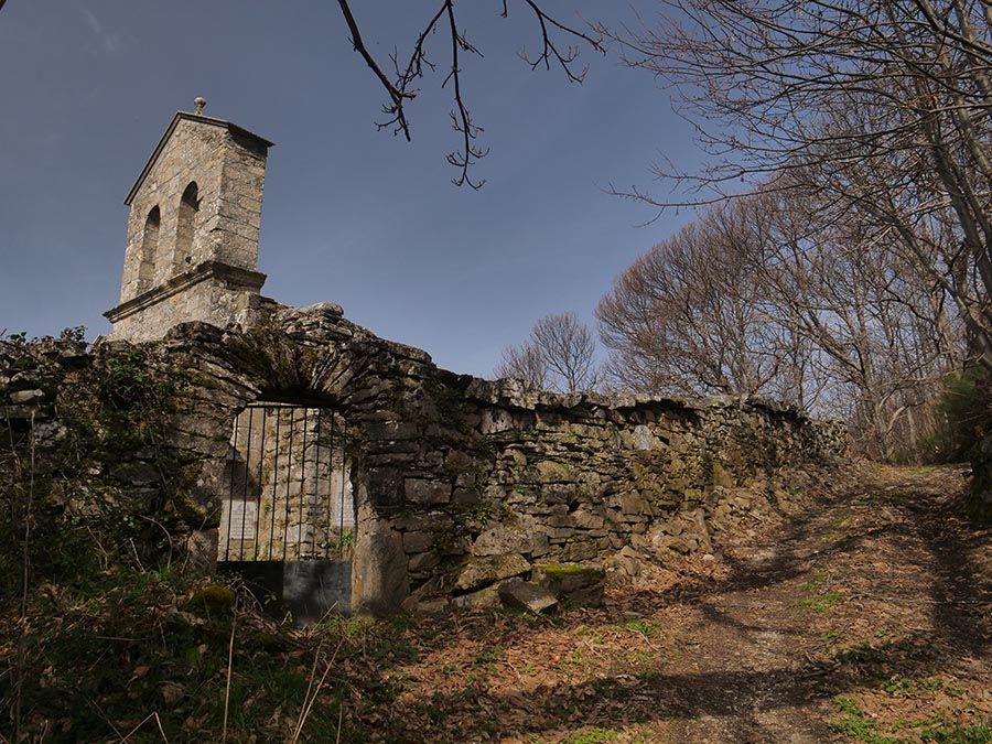 La subida desde Güimil no es demasiado dura y pronto vemos emerger la silueta de la Iglesia de San Lorenzo, que da cobertura espiritual a los pueblos de Serviz, Güimil, Peñacaira, Corrales y Mosteirós.