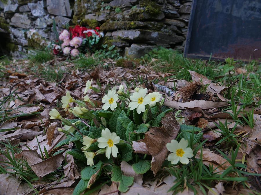 La primavera también deja sus flores para los que ya no están. Cementerio de la Iglesia de San Lorenzo, parroquia de Peñacaira (Barjas)
