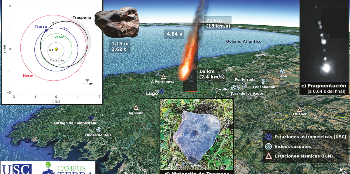 Los resultados de esa investigación figuran en el artículo ‘El meteorito de Traspena: órbita heliocéntrica, trayectoria atmosférica, campo de dispersión y petrografía de una nueva condrita ordinaria L5’, que será publicado en Monthly Notices of the Royal Astronomical Society, una de las revistas de astronomía más prestigiosas del mundo.