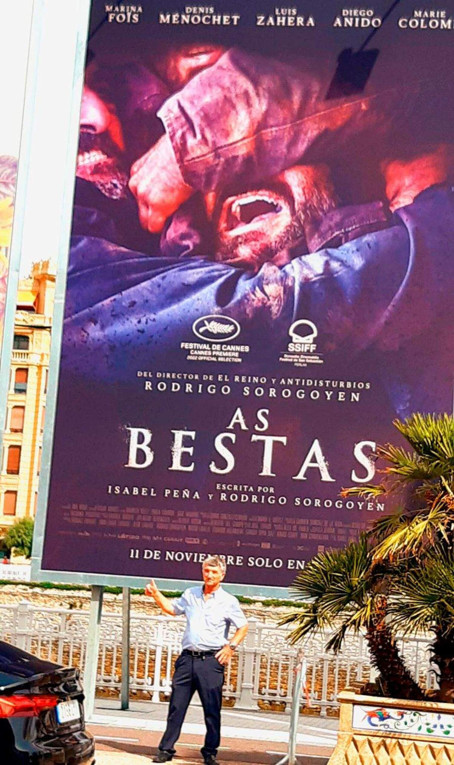 Foto: Melchor junto al cartel de 'As Bestas' en San Sebastián / Cedida a InfoBierzoPero Melchor López Valle no pudo aguantar las ganas de vivir el cine, con 'As Bestas' y todo lo que eso supone. Tanto es así, que montó a su mujer y varios amigos en el coche para poner rumbo al Festival de San Sebastián, unos recuerdos que llevará en su memoria por siempre. Como los que ahora le quedan por vivir con su próximo viaje, destino Sevilla, no se perderá la XXXVII Gala de los Goya, el próximo 11 de febrero, donde disfrutará del ambiente "desde fuera". Aunque volverá al Bierzo, una tierra amada, que en muchos momentos consiguió traspasar ese sentimiento a sus alumnos. Una tierra diagnosticada de despoblación rural y falta de industrias, a lo que Melchor López también tiene algo que decir: "Del Bierzo se pueden sacar muchas cosas, como por ejemplo agua embotellada, es una pena que cerrara la de Folgoso de la Ribera, también tenemos buenos y grandes castaños, solo falta más gente emprendedora", afirma.