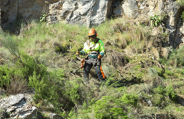 Por este motivo, el principal objetivo de las actuaciones consiste en crear “franjas de seguridad” en el entorno de los núcleos habitados para romper la continuidad horizontal y vertical del combustible forestal. “Queremos crear un perímetro limpio alrededor de los pueblos”, explica la coordinadora del dispositivo. En el mismo sentido, el responsable técnico de Diputación remarca que “es fundamental mantener limpio el entorno de los pueblos porque el riesgo de incendio es muy alto” y lamenta que “casi todos los terrenos en los que actúa el dispositivo son fincas particulares”.
