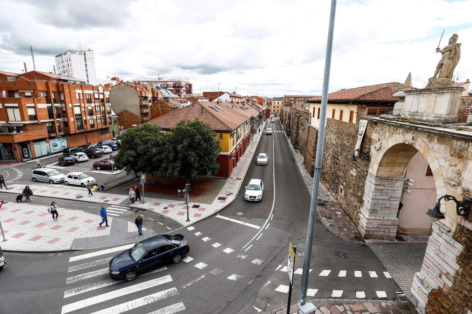 “La nueva configuración de la calle y su tratamiento más acorde con el entorno de un BIC, como es la muralla de León, ha dado prioridad a las zonas estanciales y zonas verdes que hacen más amable el espacio a la vez que ayudan a proteger el monumento, eliminando el anterior dominio en la”, resumen desde el Consistorio leonés.