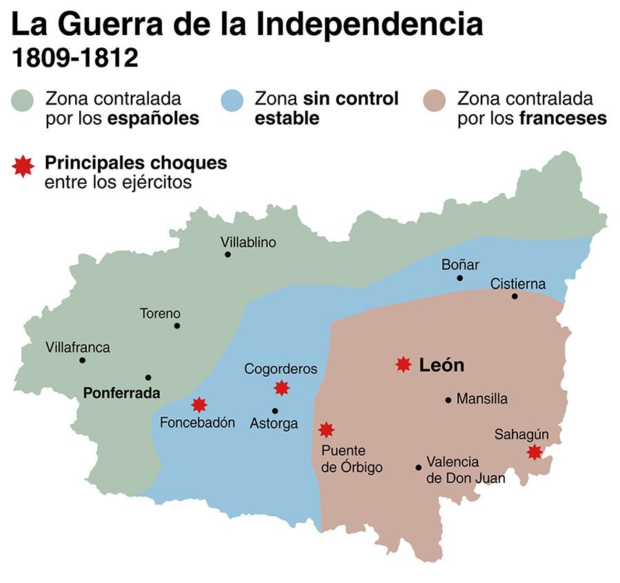 El ejército francés llegó al Bierzo el 3 de enero de 1809, destruyendo y saqueando todo a su paso y obligando a los ciudadanos a huir de sus casas. Los galos se instalaron en Villafranca, en el castillo de los marqueses, y en Ponferrada, en el convento de las concepcionistas de la calle del Reloj.