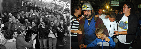Salida de los seis mineros encerrados en el pozo Malabá de Torre del Bierzo, en 2005