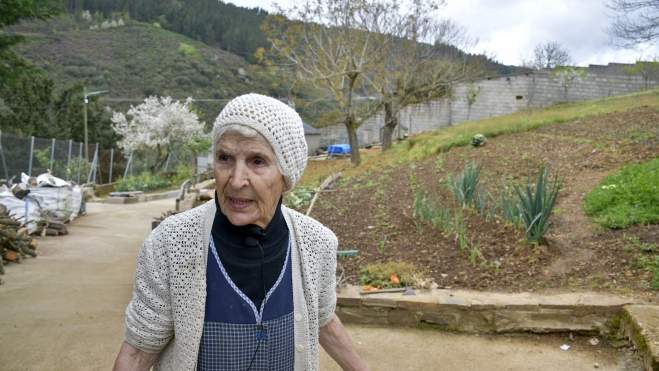 A sus casi 88 años, Concepción mantiene una huerta ecológica que trabaja sin maquinaria, solo con herramientas manuales. Cultiva repollos, guisantes, ajo puerro y otros productos de temporada. “Me gusta mucho arar”, dice, con la misma sencillez con la que explica que alguna vez tuvo ovejas, pero ya no las puede cuidar: “Se me escapaban y no las encontraba” bromea. Su día a día transcurre entre tareas del campo, pequeños arreglos en casa y la contemplación sosegada del monte que la rodea.