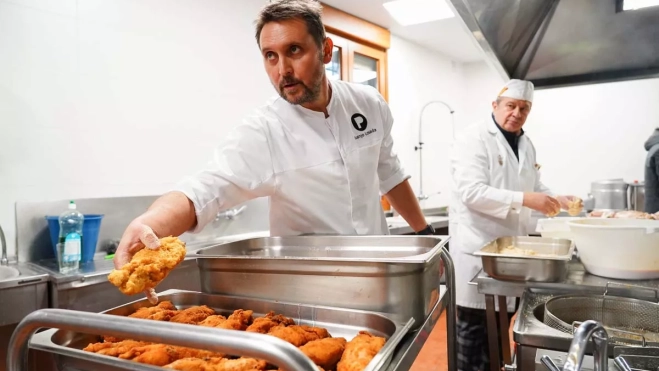 Definido por el chef como “muy sencillo”, el menú elaborado para la comida de un centenar de usuarios del Comedor Social consta de un caldo “sin ninguna proteína animal para que pueda comerlo toda la gente que no come carne o los usuarios musulmantes”, elaborado a base de champiñón, ajo y jengibre y acompañado con una galleta de queso.