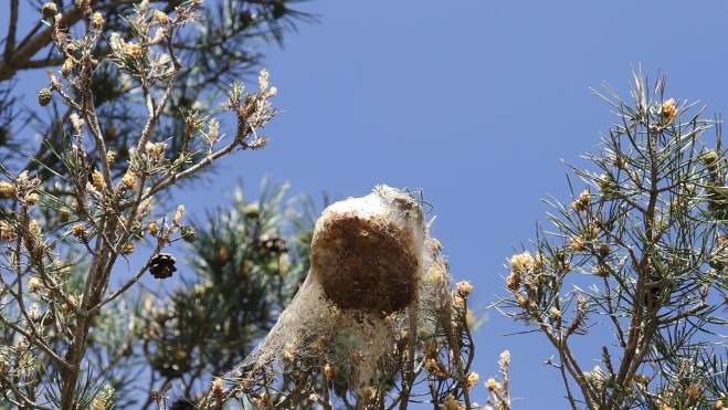 Es habitual ver a estos animales cerca de pinares, por lo que Castilla y León es un paraíso para estas orugas que nos advierten de su peligro con sus pinchos o pelos urticantes. “Lo más normal es verlas cuando dejan de caer las heladas fuertes”, señala Marian. “Los adultos forman unos nidos que podemos ver ahora en los pinos y van en fila, por eso lo de llamarlas así. Después ponen los huevos en el suelo para que salga la polilla y ese es su círculo vital”.