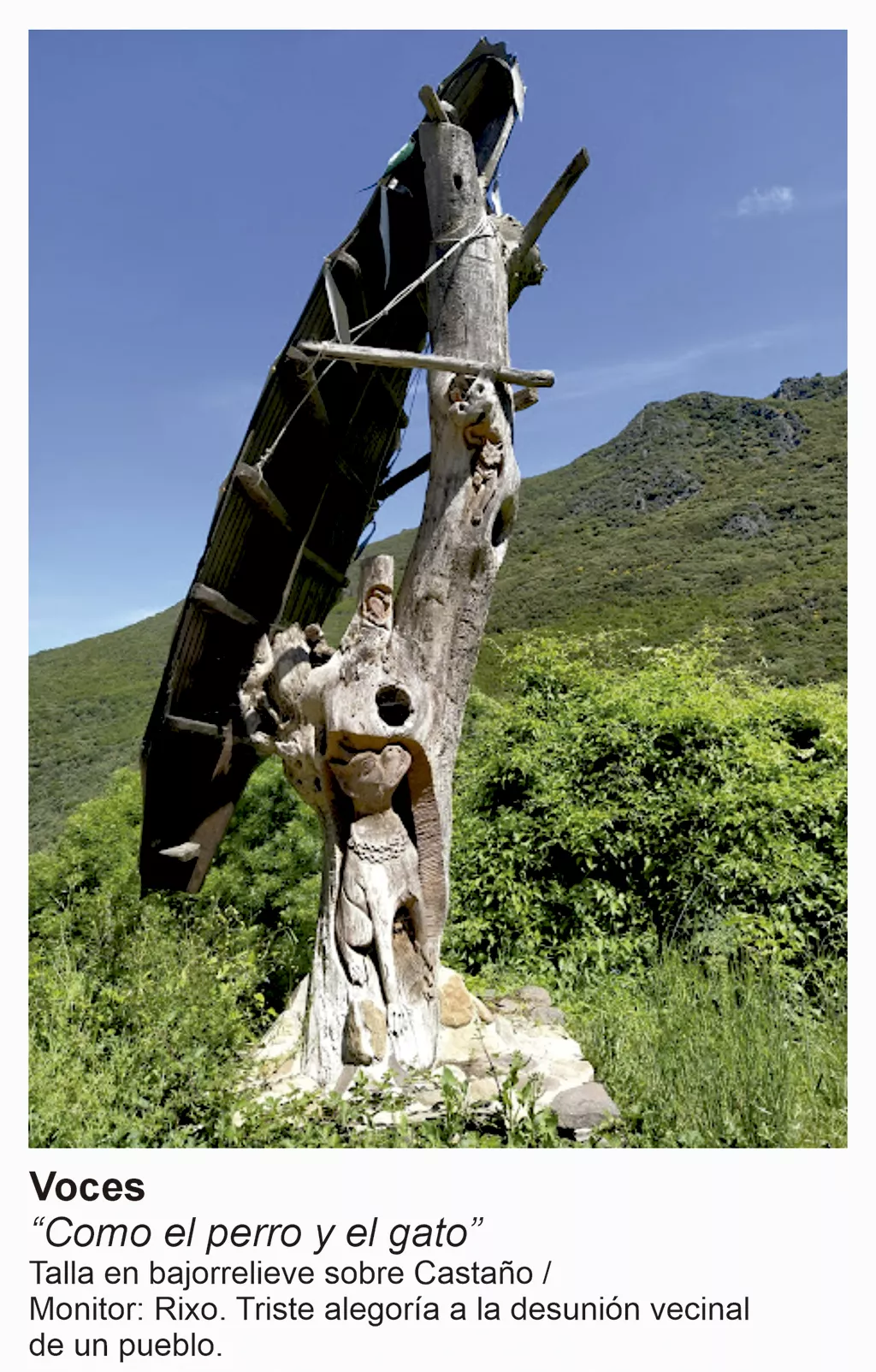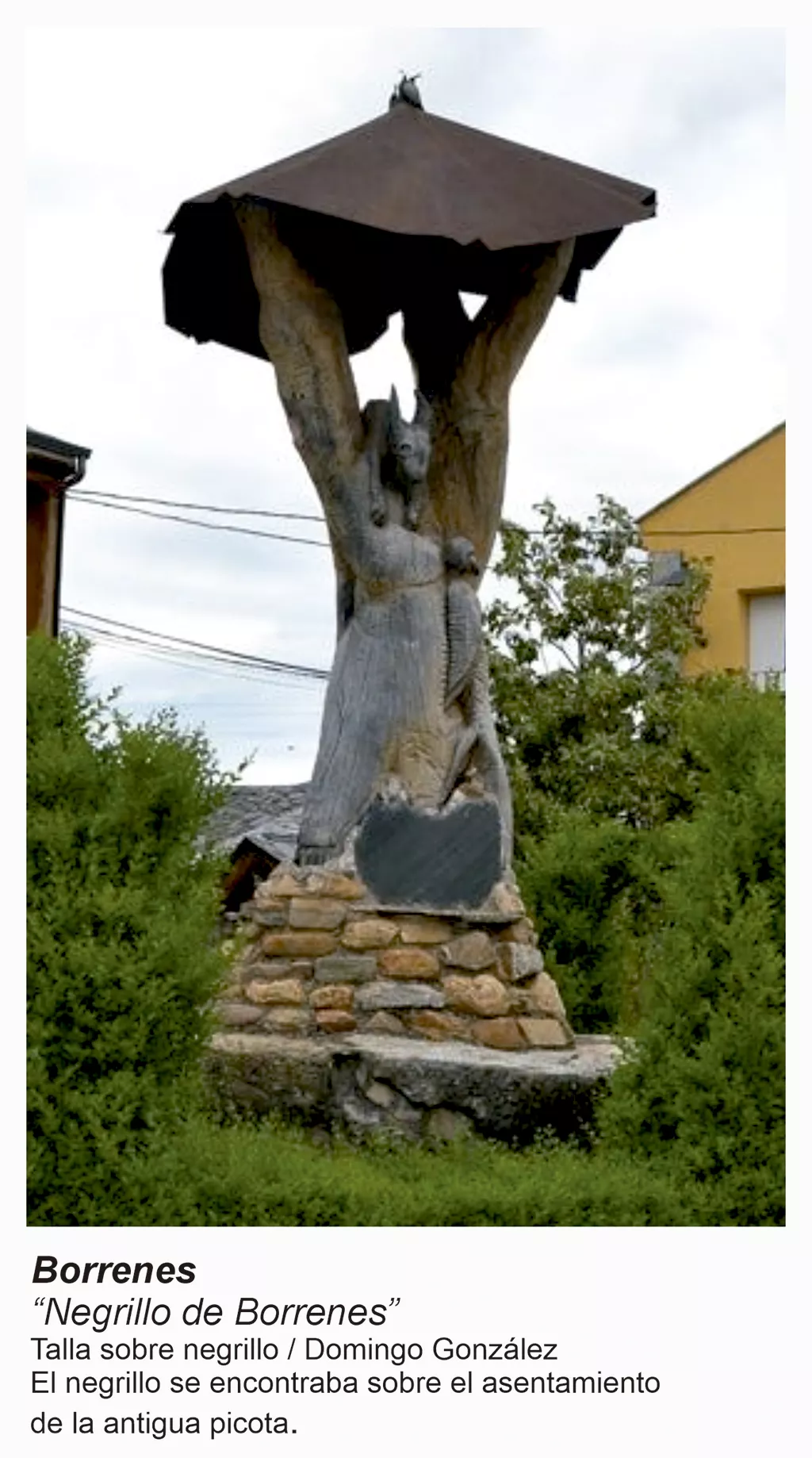 "Como moradores del planeta que son, los árboles llevan millones de años de ventaja al ser humano y quizá, por eso, se les venera desde la antigüedad. Su imponente imagen con sus ramas apuntando al cielo y sus raíces ancladas a la madre tierra ha inspirado leyendas en todas las grandes civilizaciones. Su belleza ha alimentado el imaginario colectivo de muchas culturas, e inspirado a artistas que han dejado en sus troncos mensajes tallados para sellar su vínculo con la humanidad y convertirlos en tótems de la tradición de los pueblos. En el Bierzo los árboles tallados forman parte de una ruta de 16 esculturas de madera que recuerdan la vida, la tradición, e historia de generaciones de pobladores de estas tierras, que hablan de una gran comarca como es El Bierzo", explicaba el Consejo Comarcal cuando diseñaron esta ruta.