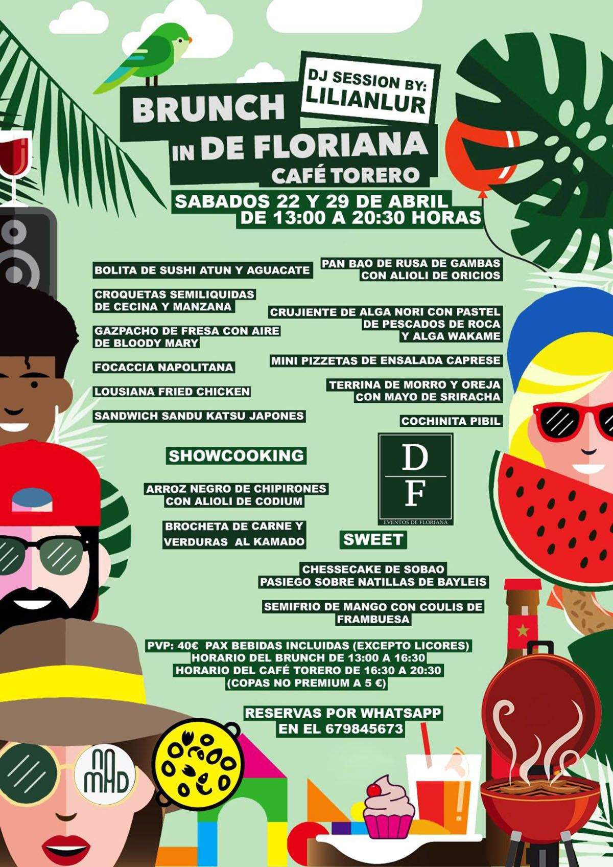 En lo que respecta a las reservas, podrán gestionarse en el WhatsApp del 679845673. Una cita de desconexión, ocio y buen ambiente por 40€ con bebidas incluídas (excepto licores). Además, en términos de horarios: el bruch estará disponible de 13:00 horas a 16:30 horas y el café torero se disfrutará de 16:30 horas a 20:30 horas.
