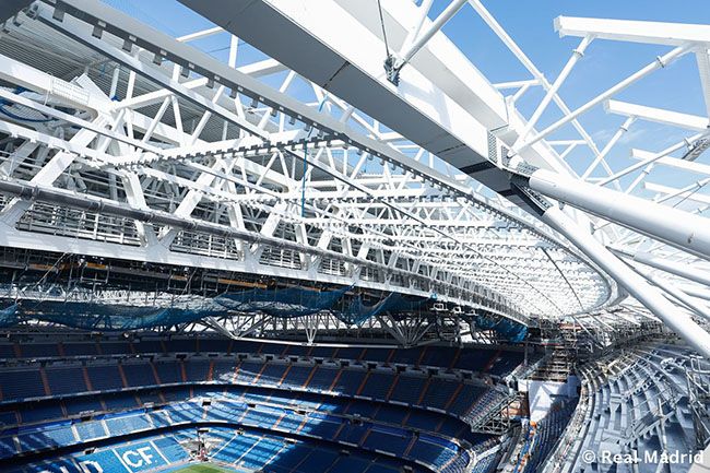 "El resultado de la remodelación del estadio nos ofrecerá una imagen envolvente, singular y vanguardista, una piel de bandas de acero y líneas variables que permitirá iluminar y proyectar imágenes y que incluirá una cubierta fija y otra retráctil del terreno de juego, de modo que todas las localidades estarán protegidas", explica la web de Real Madrid añadiendo que "la instalación de la nueva cubierta el estadio Santiago Bernabéu conseguirá una atmósfera única para socios y espectadores en general. La acústica, la verticalidad y la altura del estadio harán que la asistencia de los socios y aficionados sea una experiencia única en el mundo".