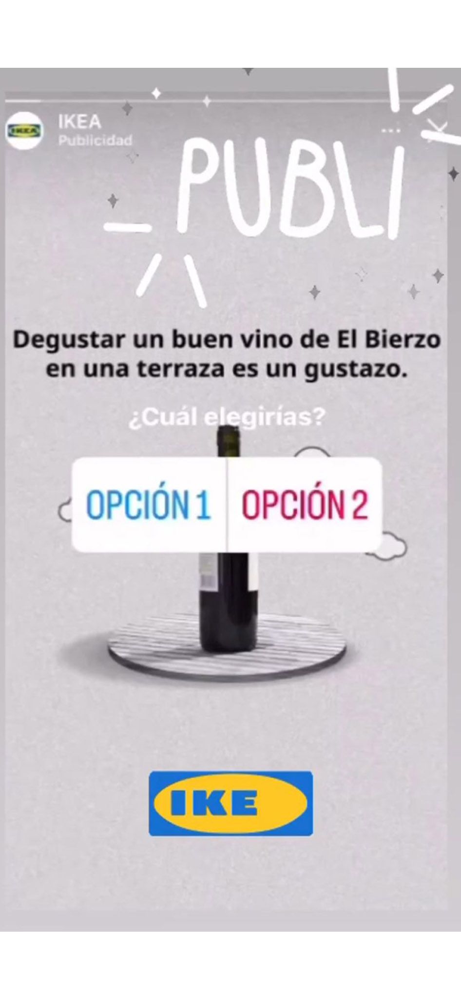 La campaña ha aparecido en Redes Sociales en formato 'storie'. La campaña mezcla el concepto terraza en el que Ikea suele enfocar su publicidad pero en esta ocasión el protagonista es también el vino de El Bierzo. Un tándem perfecto para esta campaña que ya se puede ver en Instagram.