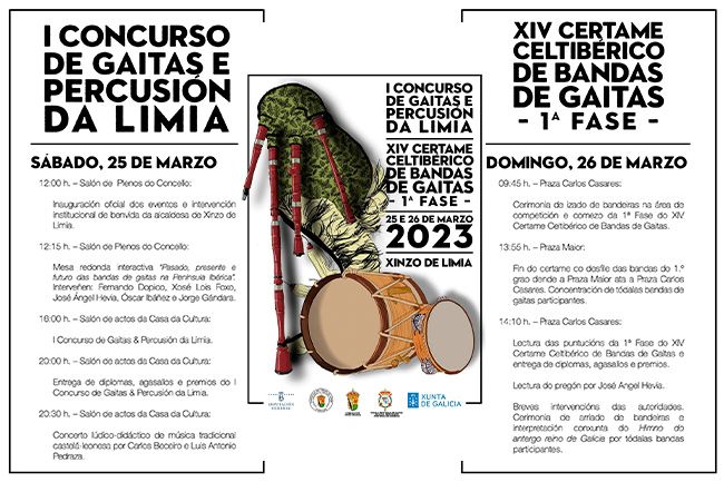 La inauguración del Campeonato será el sábado 25 a las 12.00 horas con una mesa redonda, a las 16.00, en la Casa da Cultura, arrancará el Concurso de Gaitas e Percusión da Limia. En el mismo escenario, a las 20.30 habrá un concierto de música tradicional castellano-leonesa y el domingo dará inicio el certamen a las 09.45 en la plaza Carlos Casares hasta las 14.00.