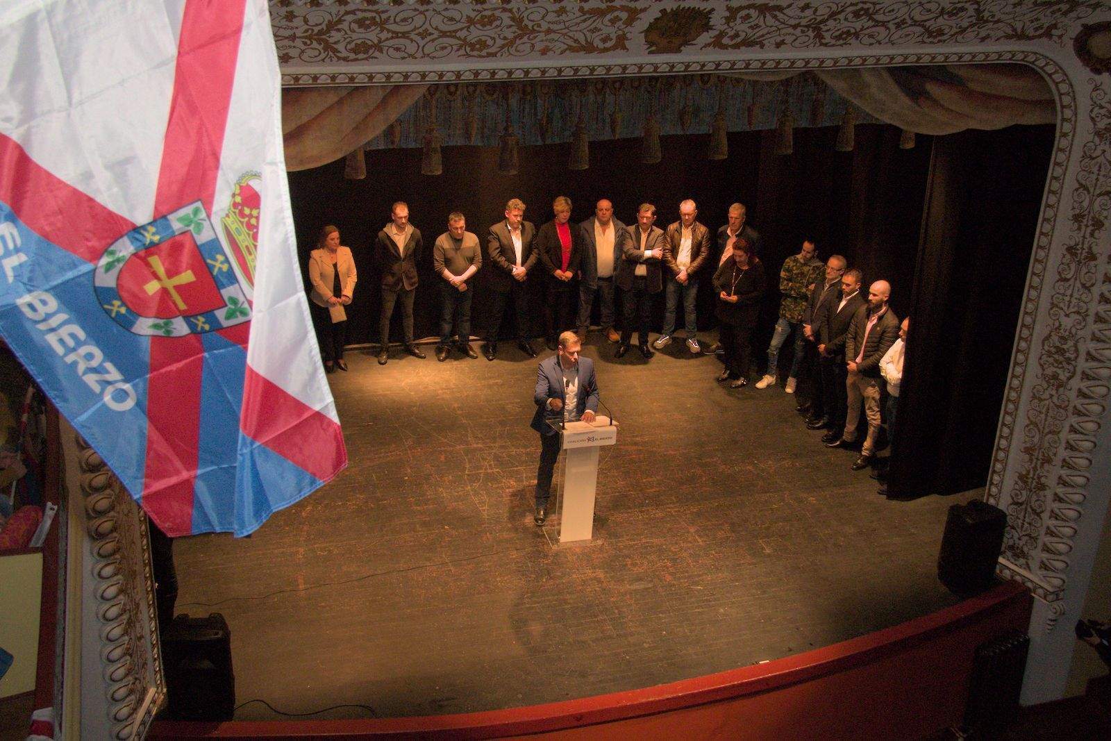 A continuación, los candidatos y candidatas de Coalición por El Bierzo subieron al escenario del Teatro Villafranquino entre los vítores y aplausos de los asistentes. Tomó la palabra Iván Alonso, Secretario General de Coalición por El Bierzo y candidato a la alcaldía de Ponferrada por Coalición por El Bierzo. Alonso comenzó su intervención con un recuerdo a la efeméride que el pasado 23 de abril se celebra: "este 23 de abril de 2023, es el aniversario de la fundación del Partido de El Bierzo (23 de abril de 1979), partido fundador de Coalición por El Bierzo, fecha señalada para el bercianismo", afirmaba. A continuación, hizo un repaso al mandato que ahora acaba, "un mandato duro y difícil, con la situación provocada por la pandemia, y con multitud de trabas que hemos superado. Trabas que surgen a consecuencia del nerviosismo en el que se encuentra el bipartidismo en El Bierzo, un bipartidismo que, acostumbrado a recibirlo todo y no aportar nada, se ve obligado, por las reivindicaciones de Coalición por El Bierzo, a tener que responder con hechos, y no sólo con palabrería y promesas, como hasta ahora venía sucediendo. Un bipartidismo PSOE – PP, PP – PSOE, que son como los Reyes Católicos, tanto monta, monta tanto, y que como estos están inmersos en batallas lejanas mientras El Bierzo padece y parece, y los hechos lo demuestran, no importarles", explica.
