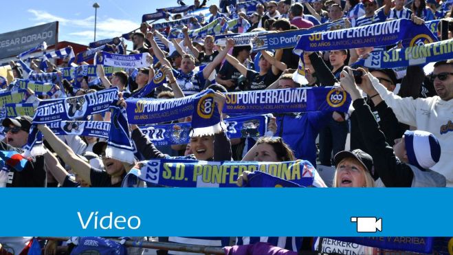 La marea blanquiazul alzó la bunfa, la bandera y la voz durante todo el partido, dejando bien claro a todo el Anxo Carro lo que es El Bierzo, Ponferrada y una afición que va a muerte con su equipo. El 'A Ponferrada me voy' se ha convertido en el himno de la jornada, que en algún momento pareció escucharse desde la propia Comarca.
