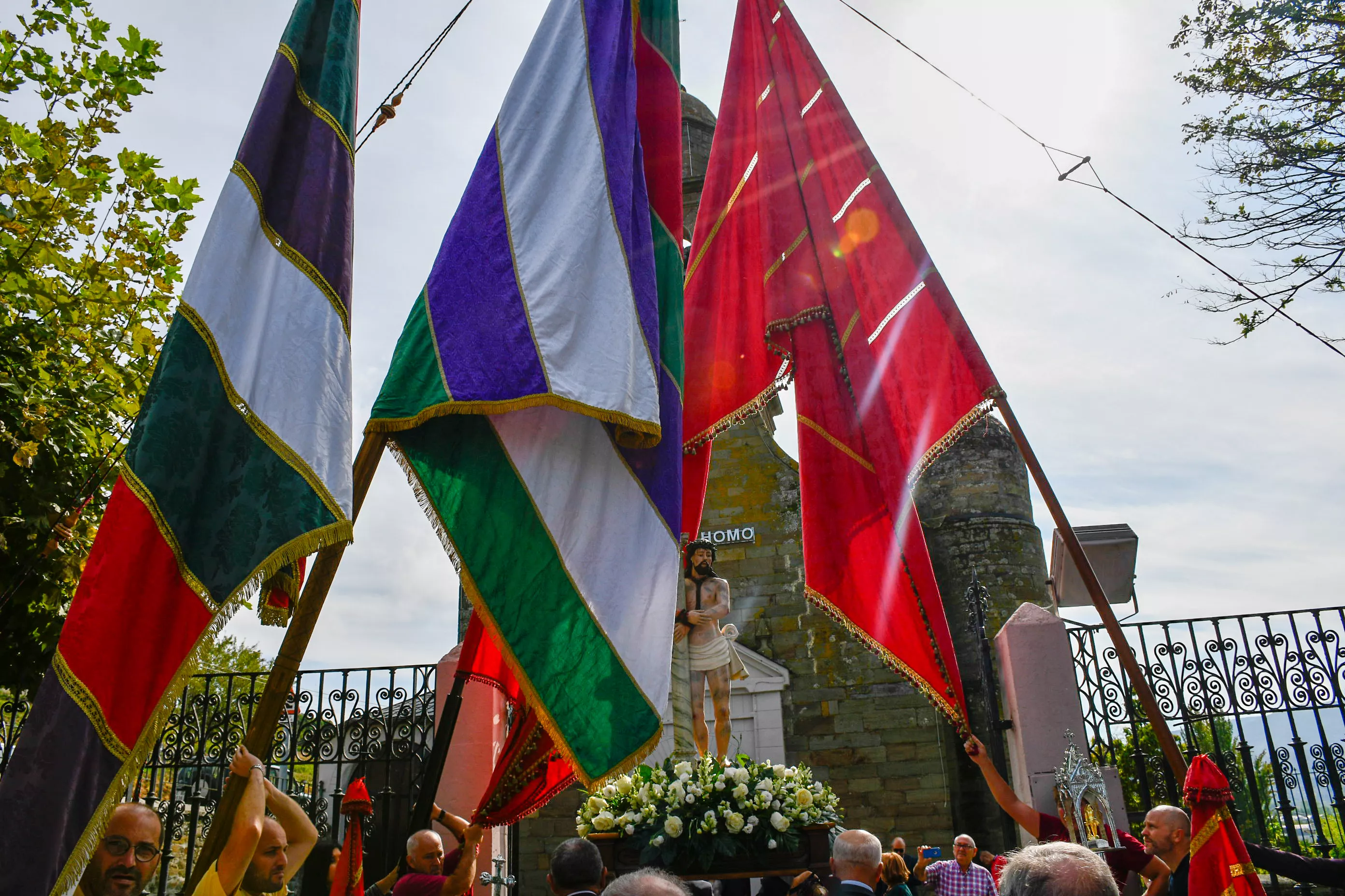 La procesión desde la plaza Mayor hasta el Santuario Ecce Homo y vuelta después del oficio religioso se ha convertido, por tradición, en uno de los actos principales de las fiestas del Cristo de Bembibre y pese a las nubes, el tiempo ha aguantado