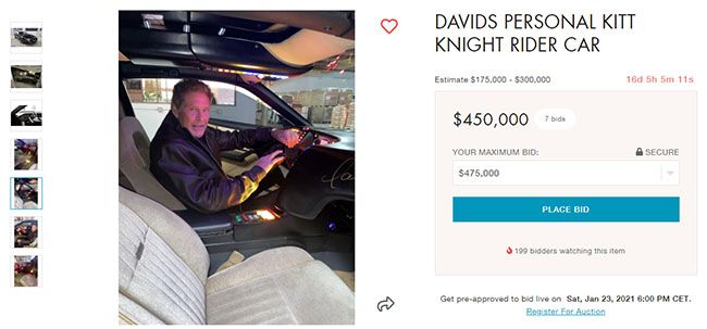 El actor ha decidido subastar todo tipo de productos en la web 'Liveauctioneers', donde todos los amantes de series como El coche fantástico o Los vigilantes de la playa podrán elegir entre más de siete páginas con artículos pertenecientes al veterano actor como una réplica a tamaño real del mítico KITT, un Pontiac Firebird Trans Am, que condujo Hasselhoff en El coche fantastico; la silla firmada por el actor que formaba parte del atrezo de la misma serie; o, también, una de las piezas de vestuario que utilizó el mismo actor durante el rodaje de Los vigilantes de la playa.