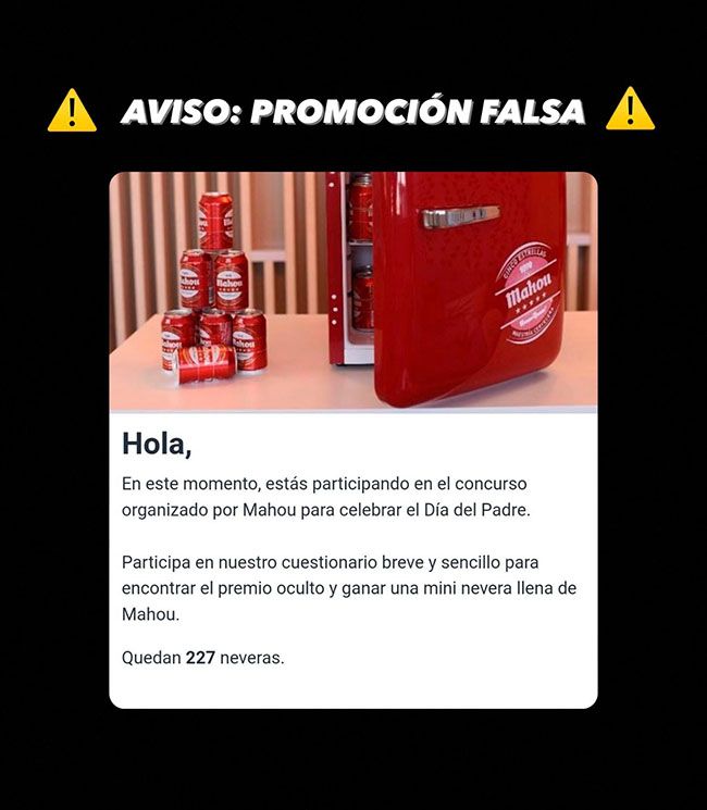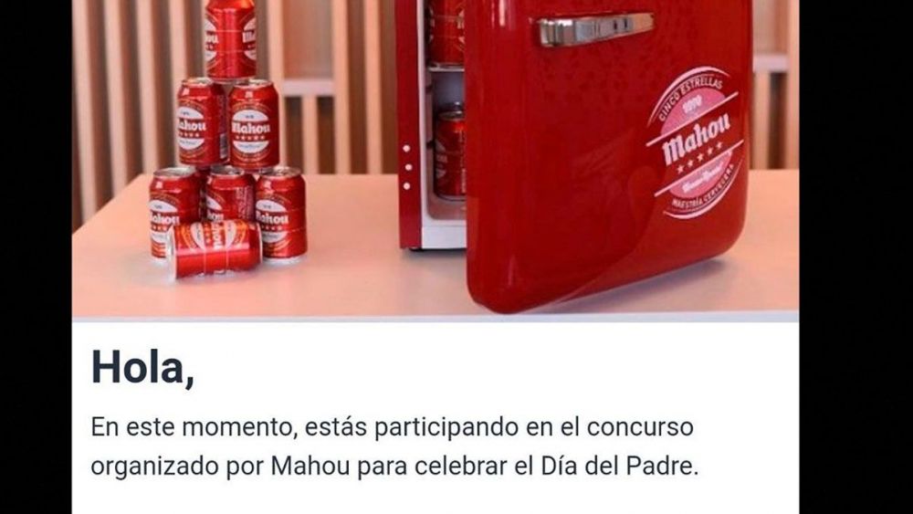 Según precisa el centro tecnológico con sede en León, el objetivo es redirigir al usuario a una web fraudulenta con el gancho de un concurso que supuestamente está organizando Mahou por el Día del Padre.