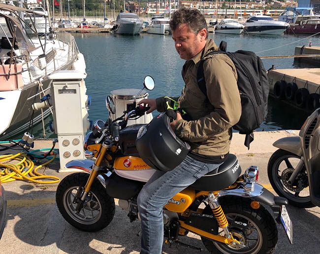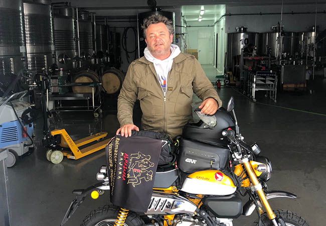 Javier Álvarez en el punto de partida del viajeConfucio dijo que si eliges un trabajo que te gusta, no tendrás que trabajar ni un día de tu vida. Este mantra se personifica en el berciano Javier Álvarez, propietario de la bodega Almázcara Majara, que ha recorrido 2.400 kilómetros en 5 días... en una mini-moto Honda Monkey 125, que permite una velocidad máxima de 90 kilómetros por hora. El propósito del viaje era honrar al vino Denominación de Origen Bierzo que produce su bodega pero, finalmente, se convirtió en una experiencia vital que pretende instaurarse como tradición.