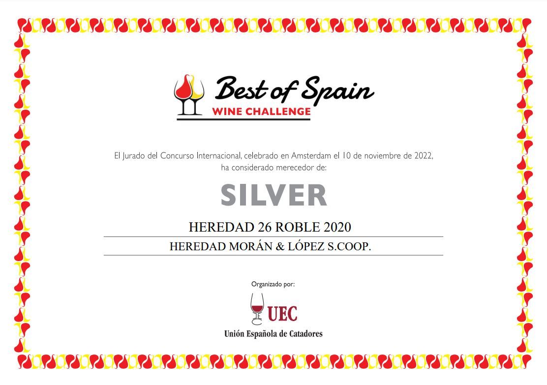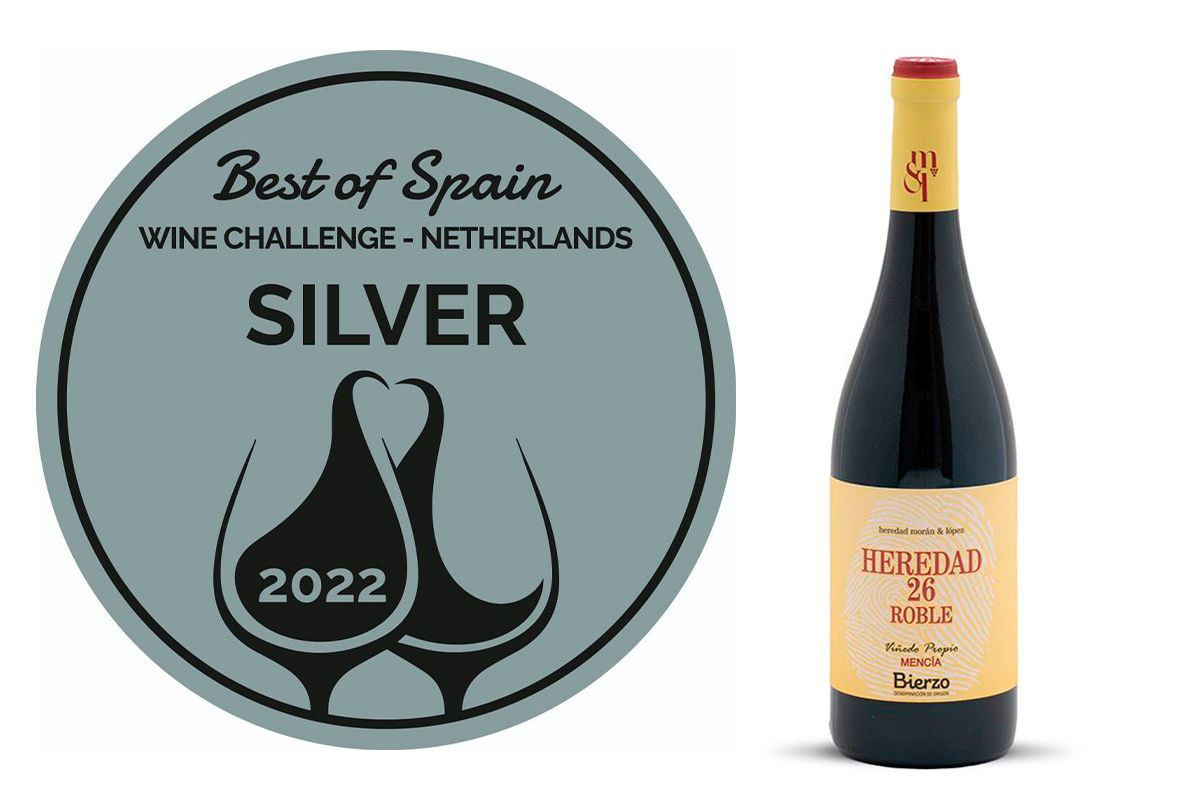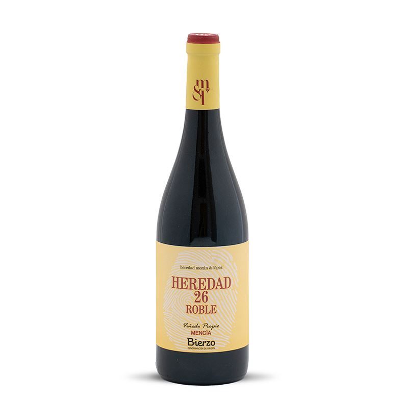 El Heredad 26 Mencía Roble destaca por su color violáceo de buena intensidad cromática, muy limpio y brillante, con capa media y buena lágrima fluida y lenta y que en movimiento deja entrever reflejos violáceos de juventud.
