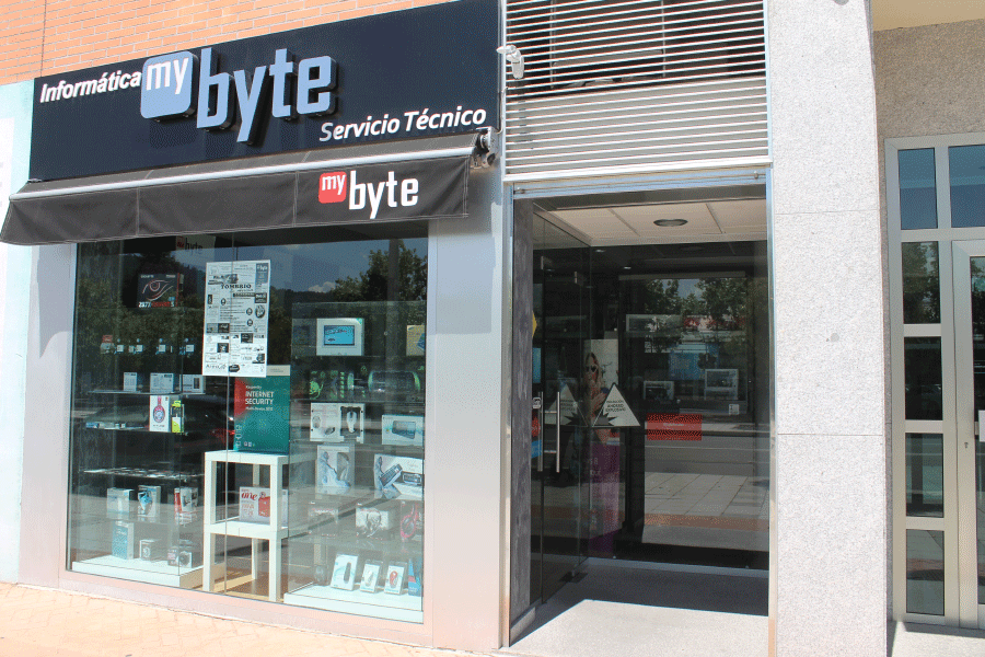 MyByte es una tienda de informática que cuenta con servicio técnico y mantenimiento para empresas. Se encuentra en la avenida de la Lealtad, en el barrio de La Rosaleda.