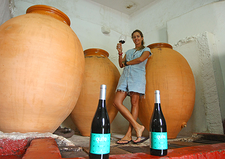 La enóloga gaditana afincada en El Bierzo, Verónica Ortega, en su bodega de Valtuille de Abajo,, con su vino 'Quite', envejecido en ánforas de barroLos vinos del Bierzo comienzan a 'criarse' en vasija de barro. Una muestra, la enóloga Verónica Ortega, quien experimenta en la añada 2014 del vino 'Quite' con el envejecimiento en ánfora, que le permite rebajar el 'maquillaje' de la madera con la que se suele hacer la crianza.