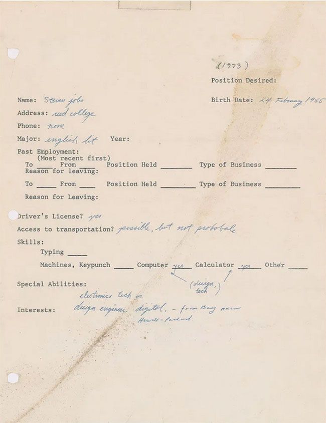 Según han confirmado desde la casa de subastas, la solicitud de empleo habría sido escrita por Steve Jobs tras presentar su renuncia en el Reed Collage, donde tan solo acudió un semestre para recibir su formación en literatura inglesa.