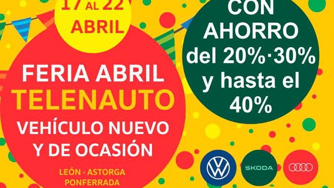 Del 17 de abril al día 22 del mismo mes podrás disfrutar de la Feria de abril de Telenauto con vehículos de ocasión y nuevos. Además, muchos de estos coches llevan un ahorro del 20 %, 30 % y hasta un 40 %.