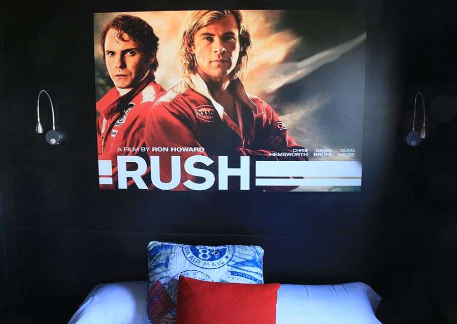 En contraposición, el negro está dedicado al inglés Hunt. En este caso, además de sus coches y fotos, también hay una dedicada a la película biográfica que se estrenó en 2013: Rush, en la que fue interpretado por el actor australiano Chris Hemsworth. En la película se muestra principalmente su rivalidad con el piloto austríaco Niki Lauda, interpretado por el actor Daniel Brühl, en la temporada de 1976.
