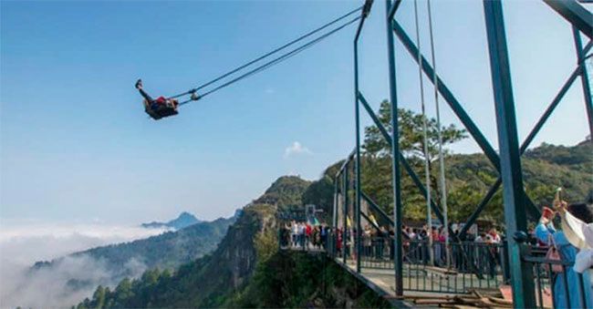Otra de las tracciones más famosas del parque, ofrece la posibilidad de disfrutar del columpio más alto de China. Esta atracción permite a los más atrevidos que se monten en él, balancearse a una altitud de 300 metros sobre el suelo, empleando como única medida de seguridad un arnés.