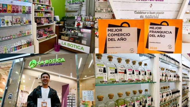 La Botica de los Perfumes ha sido galardonada con los premios Comercio del Año 2026 y Franquicia del Año 2026 en la categoría de Cosmética Natural, dentro del prestigioso certamen nacional Comercio del Año, celebrado el pasado 22 de octubre en el Hotel Alexandre Fira Congress de Barcelona.