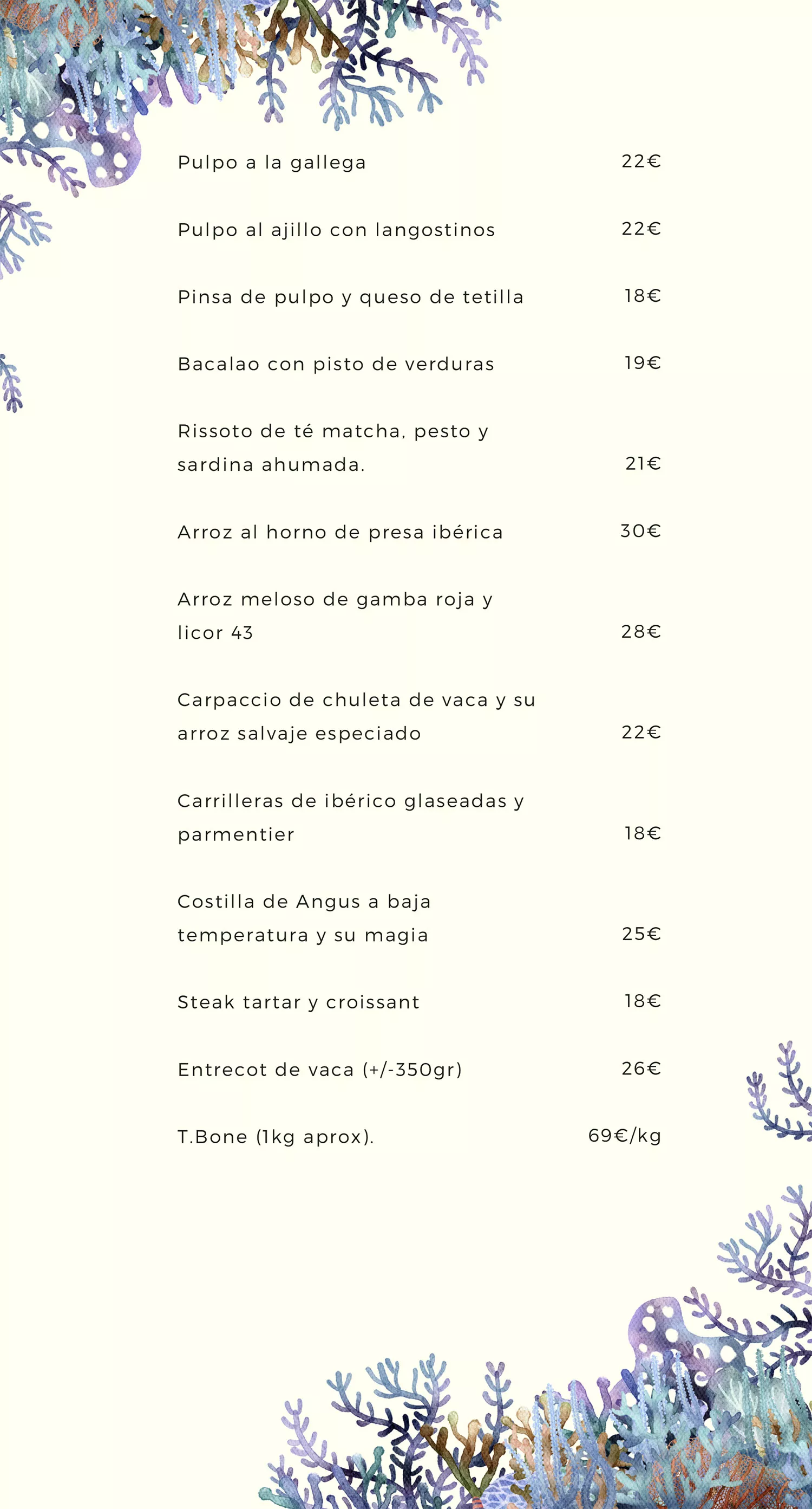 Respecto a la carta destaca la ensalada de burrata y jamón, el salteado de tofu y hummus, la brocheta de brócoli kimchi, el risotto de té matcha, las carrilleras de ibérico, el steak tartar... una rica y variada mezcla de sabores tradicionales y exóticos para disfrutar del verano.
