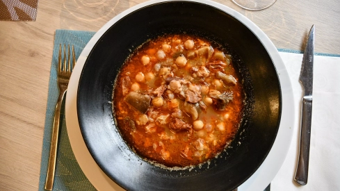 Las 5 opciones de los primeros platos son: potaje de garbanzos con setas y botillo, alubias con gambas y pulpo, tacos de chichos con alubias pintas y cebolla encurtida, además de tagliatelle con ragú de jabalí. Por último, también podemos decantarnos por una parrillada de verduras con salsa romesco.