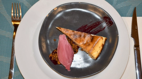 Respecto a las opciones del segundo encontramos "platos con una elaboración y con una buenas guarniciones que es lo que más varía y en lo que se mete mucho producto de temporada", afirma Álvaro. Estas opciones son risotto de setas con gorgonzola y castañas del Bierzo, bacalao con pisto berciano, caldereta de pescado, carrillera de ternera al mencía con parmentier de patata y entrecot de vaca con patatas y pimientos asados. Para coronar el 'banquete', La Violeta ofrece uno de sus postres "principales" como es la tarta de queso Veigadarte con helado de frutos rojos. No obstante, la carta también oferta el tiramisú 'La Violeta' y ensalada de fruta, sorbete de mandarina y almíbar casero de hierbabuena.