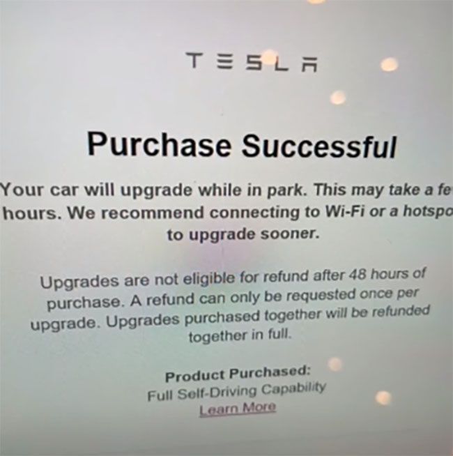 Comprobante de la compraEsta surrealista historia ha sido compartida por la propia madre del bebé en Tiktok para mostrar a los usuarios más escépticos la confirmación de la compra, que no descubrieron hasta que llegaron los extractos bancarios. Sin embargo, para entonces ya era demasiado tarde para recuperar el dinero de este "Paquete completo de conducción autónoma", con un coste de 10.000 dólares, porque únicamente se podía anular antes de las primeras 48 horas tras la compra. Al no darse cuenta de lo que había hecho el bebé, los padres supieron del error cuando el banco les envió su extracto semanal.