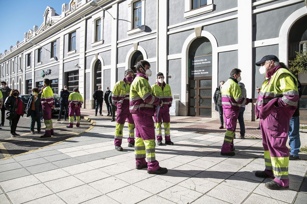 La antigua estación de ferrocarril de la calle Astorga en la capital leonesa acogió esta mañana una concentración convocada por el comité provincial del grupo de empresas Renfe para protestar contra el cierre del centro médico y la externalización de las cargas de trabajo. La movilización tuvo como objetivo demandar la inmediata reapertura del centro médico de la provincia, cuya actividad fue suspendida al no reunir las condiciones que las autoridades sanitarias requieren para este tipo de instalaciones, ya que la Unidad Médica Básica de dicho ha de ser personal propio de Renfe.