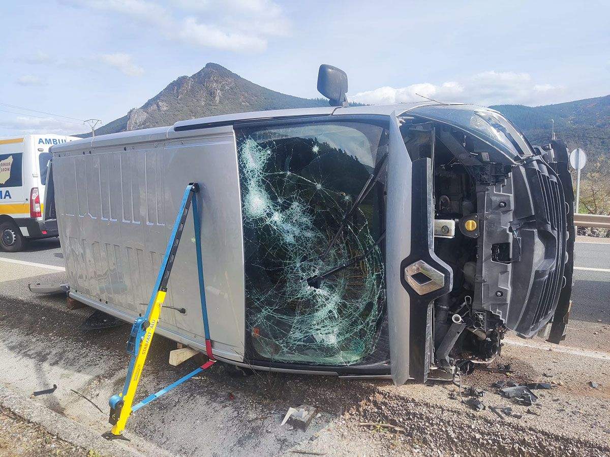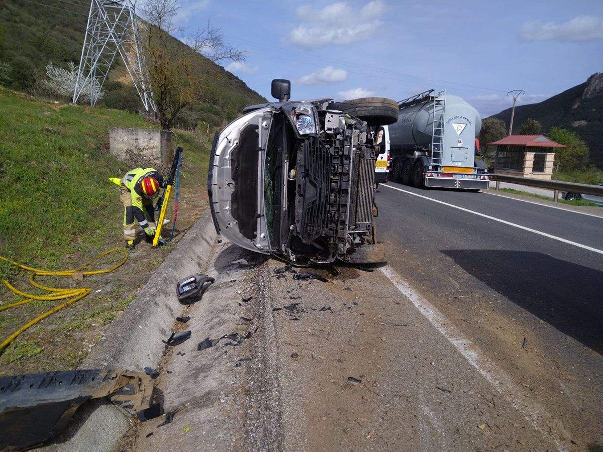 En principio se trata de un vuelco lateral de una furgoneta en la que iban trabajadores de una pizarrera en el kilómetro 433 de la N-120. Hasta este punto han acudido una ambulancia de soporte vital básico, una dotación de personal sanitario de Villafranca del Bierzo y la UVI móvil. A mayores, también un retén de los Bomberos de Ponferrada se ha acercado hasta el lugar, para sacar del vehículo al hombre que iba en la parte trasera, y que ha necesitado ser trasladado al complejo hospitalario berciano.