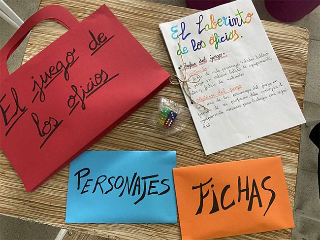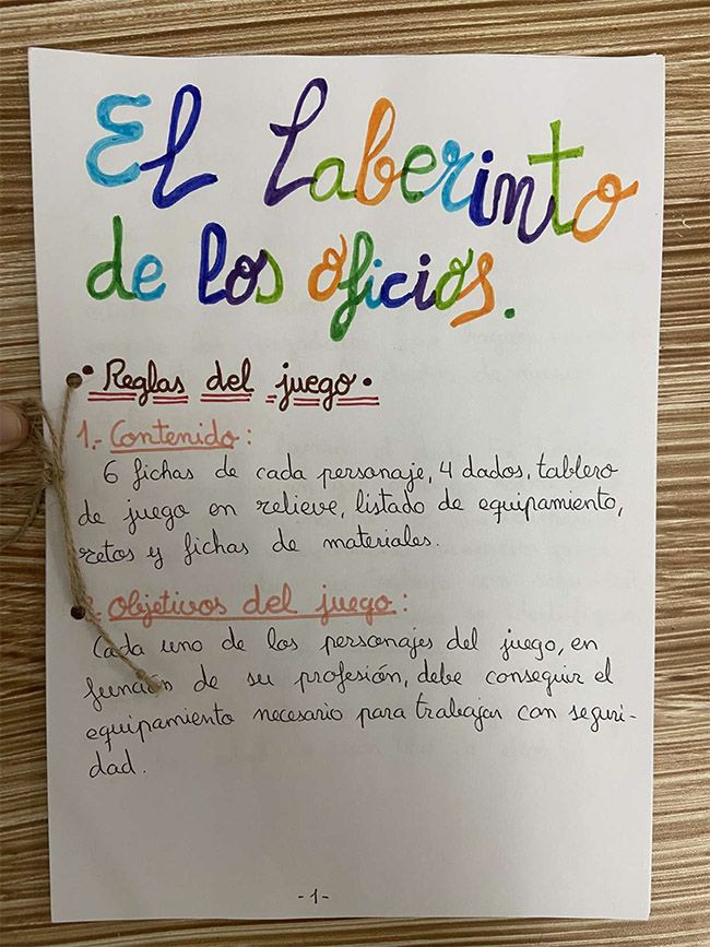 Alma, Manuela y Érica se han hecho con el primer premio por su trabajo de "El laberinto de los oficios". En un trabajo perfectamente explicado con las normas del juego, la preparación, el desarrollo, ellista de equipamiento, y cómo conseguir el objetivo final... estas tres alumnas han ganado una tablet y un ordenador portátil para el centro.