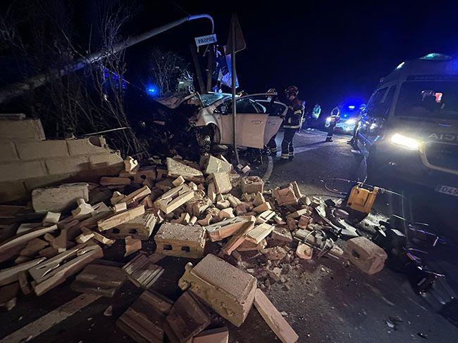 El siniestro consistió en una salida de vía de un turismo, que impactó contra un muro, quedando atrapados uno de ellos en el interior del vehículo. El 112 Castilla y León pasó el aviso al subsector de Tráfico de la Guardia Civil de León, a los Bomberos de León y al centro coordinador de urgencias de Emergencias Sanitarias - Sacyl, que movilizó una UVI móvil y una ambulancia soporte vital básico.