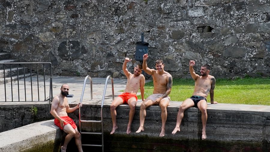 Sin embargo, una vez llegados a la zona de baño, donde el agua está mantenida por varias compuertas que construyen una piscina natural digna de cata, salto y buceo, se ubican los bañistas, turistas y vecinos que precisan de una jornada de relajación, Sol, agua fresca y amigos. Aunque entre los bañistas que allí se encontraban, InfoBierzo detectó 4 caras conocidas disfrutando de las aguas bercianas. Ellos eran Paris Adot, Dani Ojeda, Kaxe y Agus Medina, cuatro jugadores de la Ponferradina, que además de vigilar la calidad del salto de nuestro reportero como si del VAR se tratara, mandaron un saludo al Bierzo.