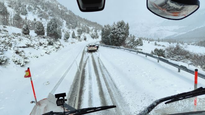 “Otras veces no se apartan los vehículos y te tienes que orillar”. Para adelantar a un turismo que circula delante de la quitanieves, lo recomendable y más seguro es que se coloque a la izquierda, porque, de caso contrario, la nieve que limpie va a golpear al vehículo tras superarle. “La gente no lo llega a ver, pero todos los días tenemos problemas por la falta de civismo”, incluso con la presencia de ciclistas en la carretera en pleno temporal, comenta.