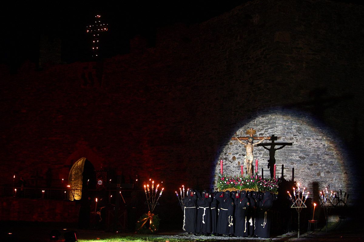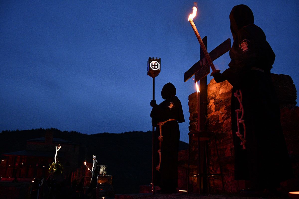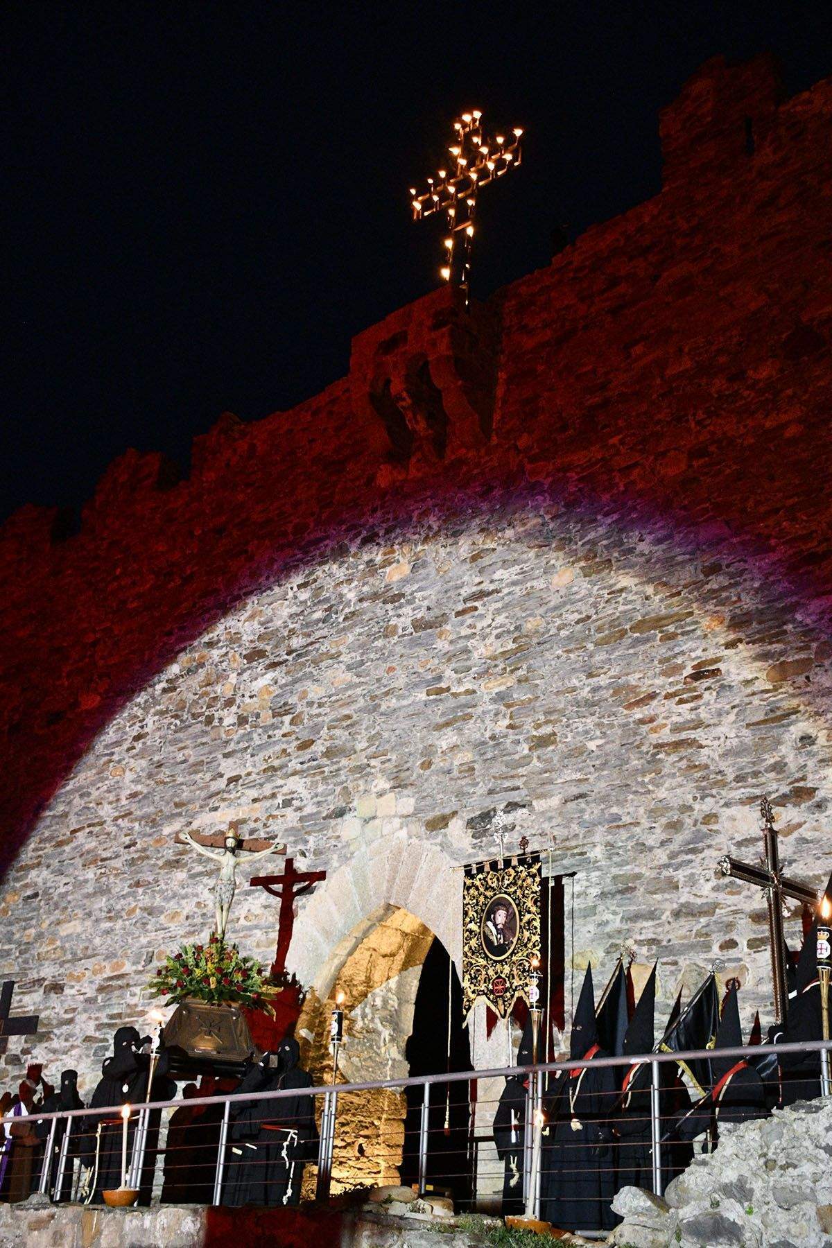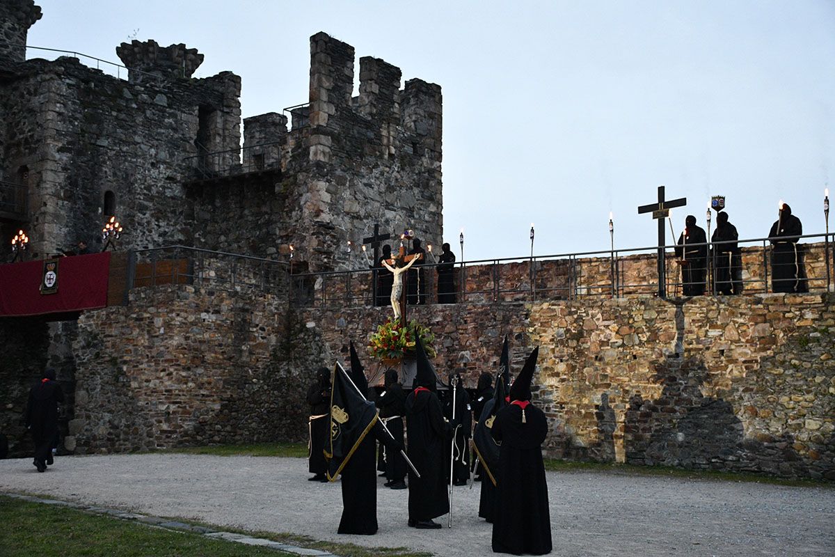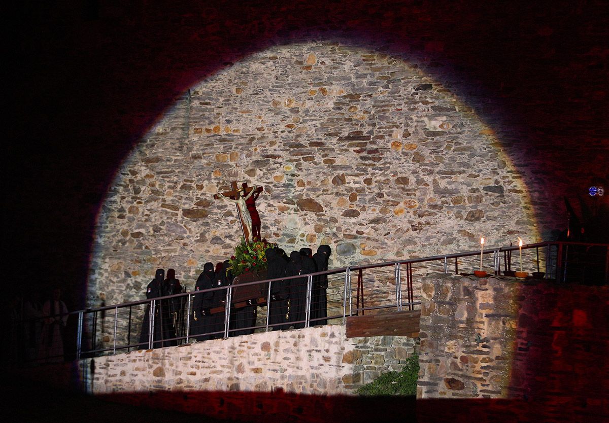 Viacrucis penitencial en el castillo de los Templarios de Ponferrada con el Cristo de la Esperanza y el Cristo de la Fortaleza