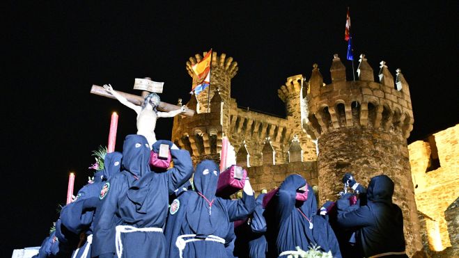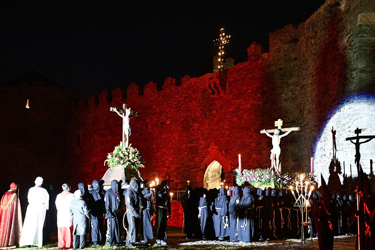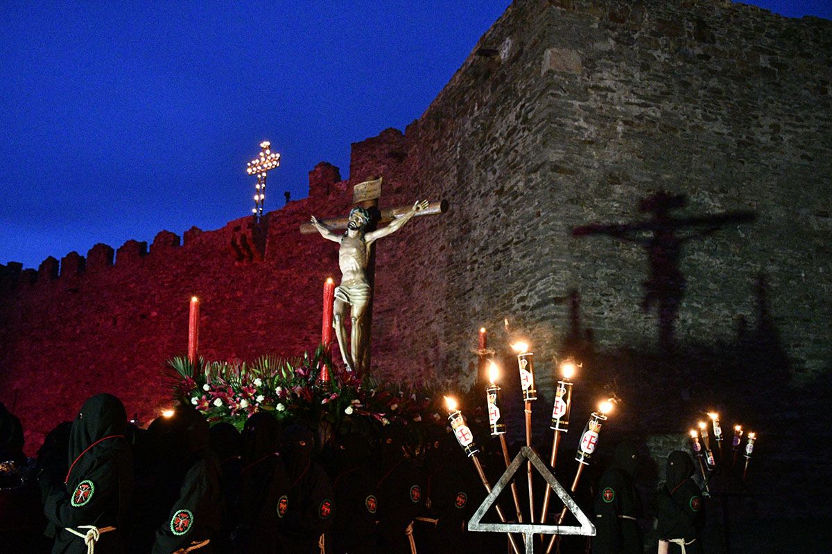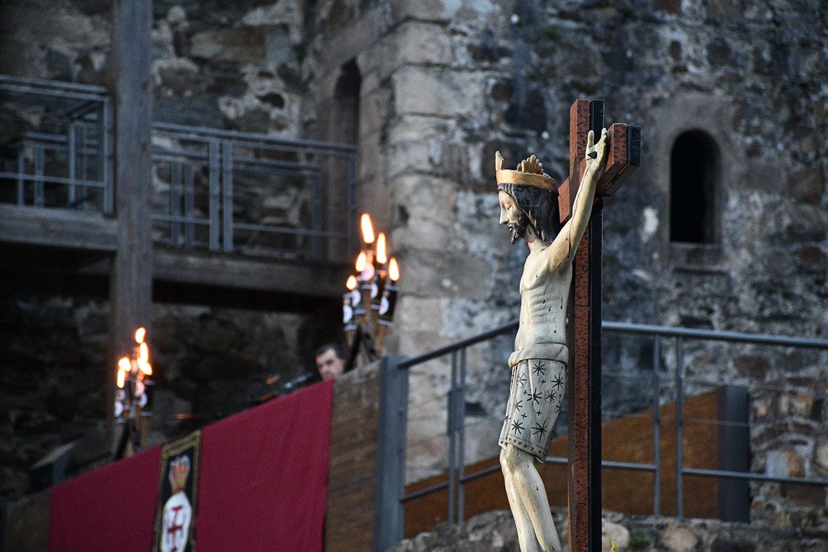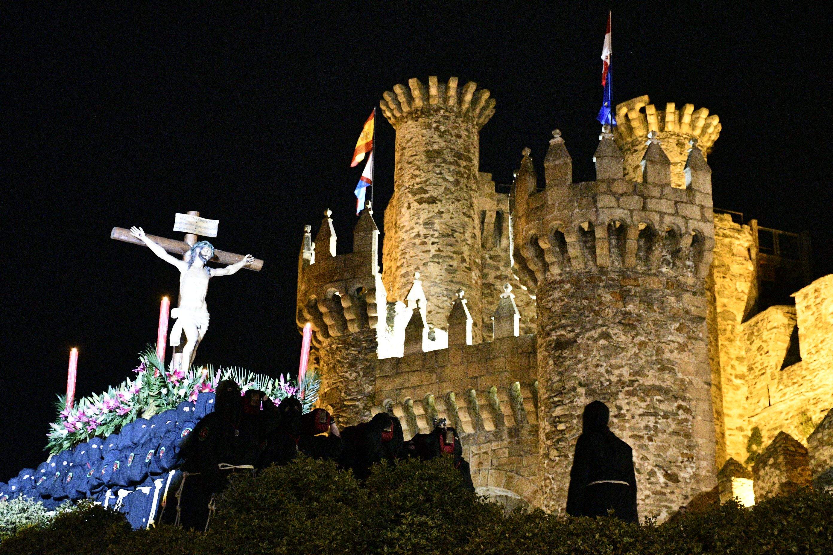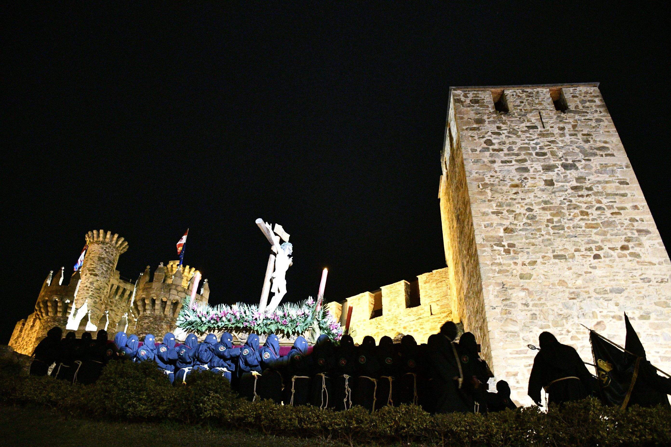 Viacrucis penitencial en el castillo de los Templarios de Ponferrada con el Cristo de la Esperanza y el Cristo de la Fortaleza